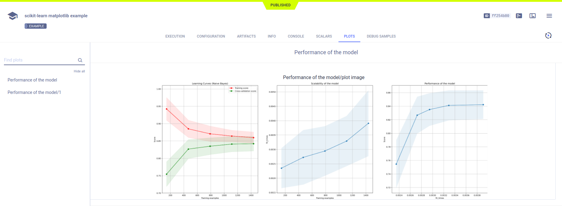 In addition, ClearML captures and logs everything written to standard output, from debug messages to errors to library warning messages.