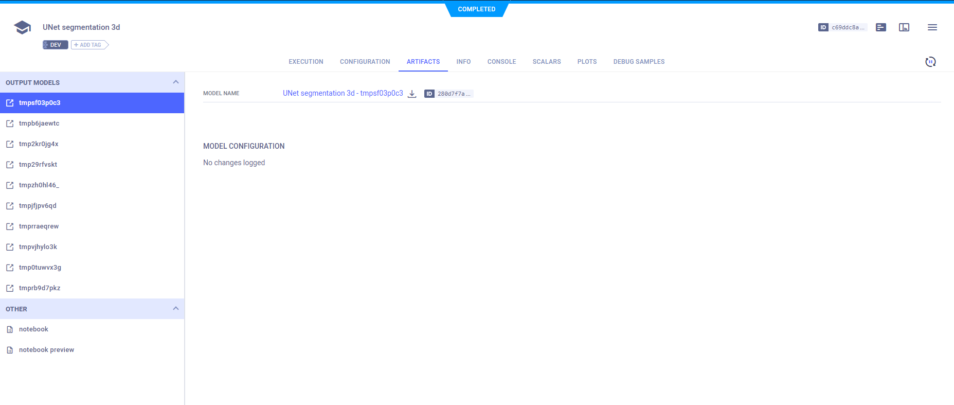 View the captured models in the WebApp, in the task's Artifacts tab.