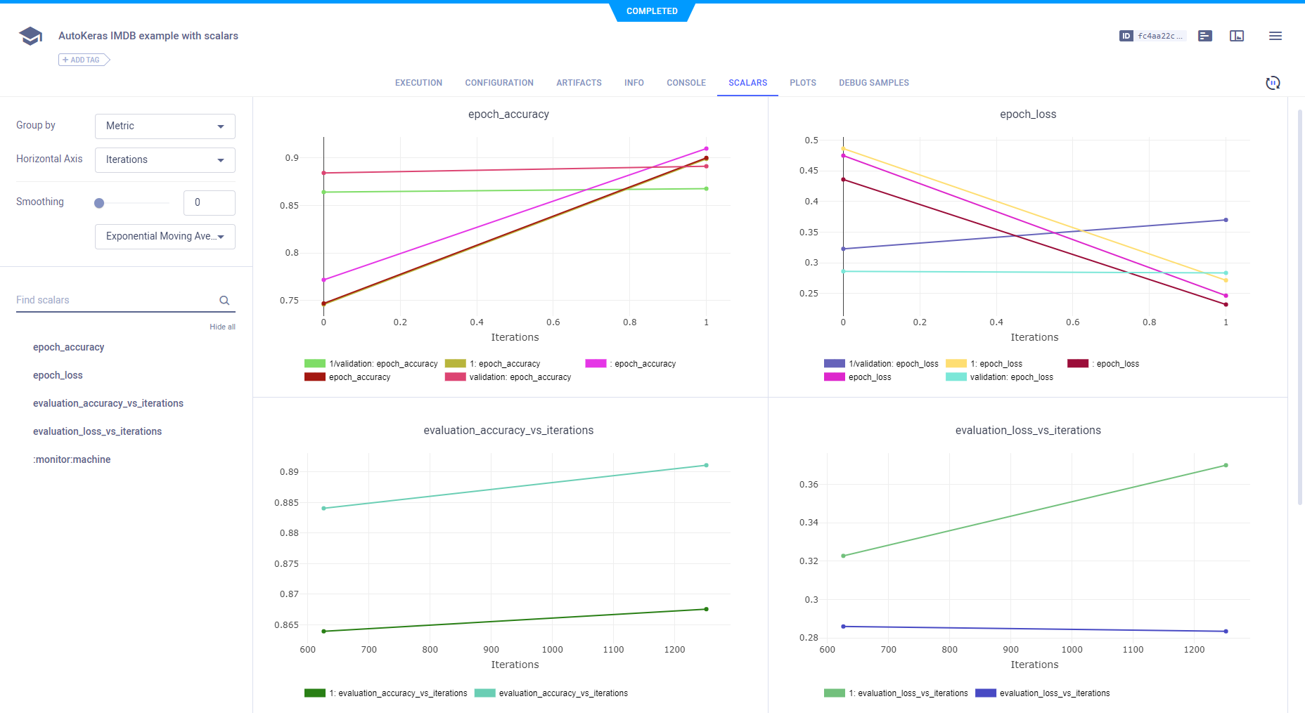 • Creates a task named autokeras imdb example with scalars in the autokeras project.
