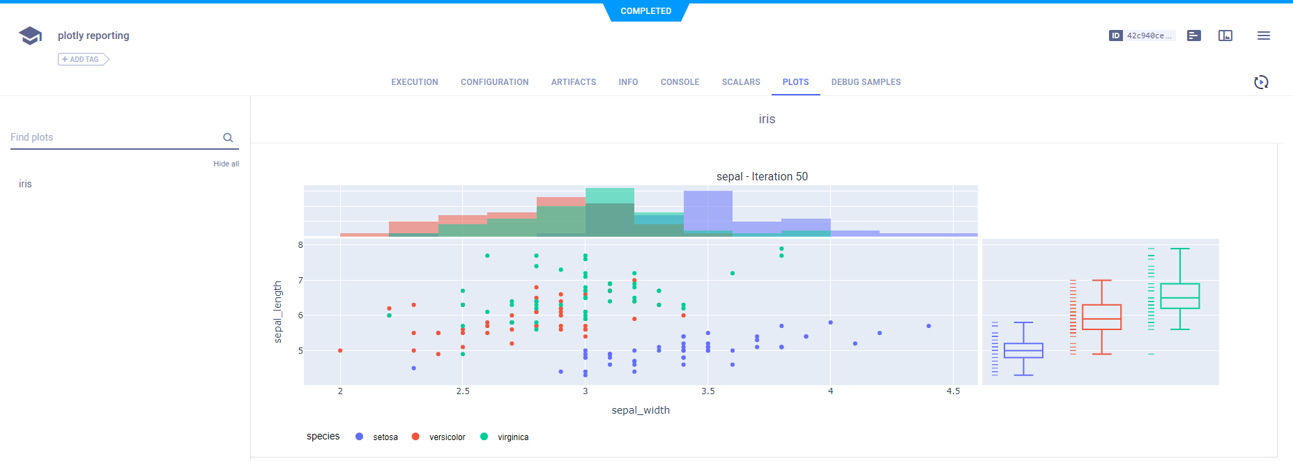 - Plots - Other plots and data, for example: Matplotlib, Plotly, and ClearML explicit reporting.