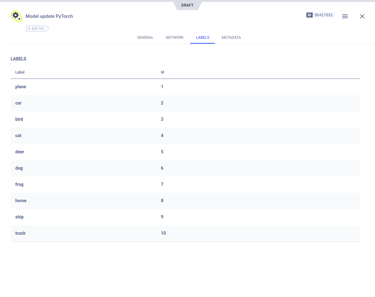 The models LABELS tab displays its label enumeration.