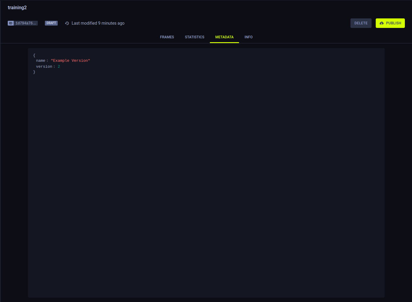 - Create New Version - Creates a child version of a Published dataset version. The new version is created in a draft state, and inherits all the parent version's frames