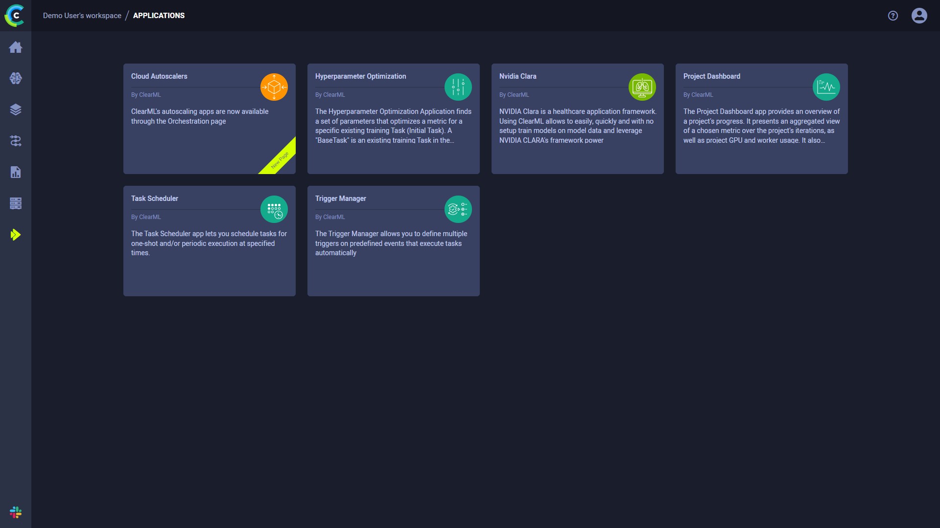 Use ClearML's GUI Applications to manage ML workloads and automatically run your recurring workflows without any coding.