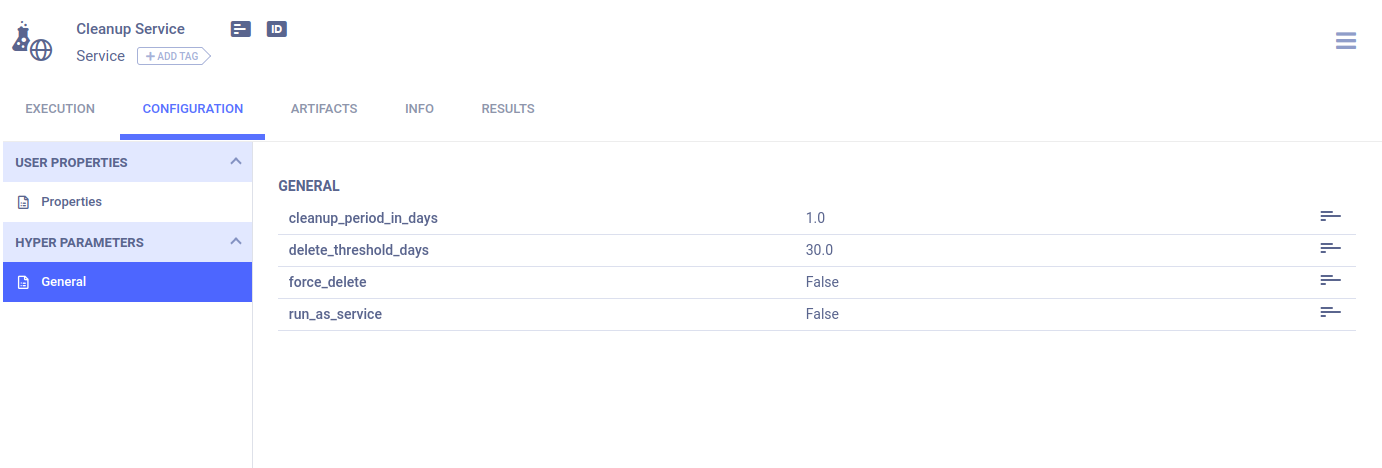 delete_threshold_days- Tasks older than this number of days will be deleted. The default value is 30 days.cleanup_period_in_days- Repeat the cleanup service at this interval, in days. The default value is 1.0 (run once a day).force_delete- IfFalse(default), delete only Draft tasks. IfTrue, allows deletion of tasks in any status.run_as_service- IfTrue(default), the task will be enqueued for remote execution (default queue: "services"). Otherwise, the script will execute locally.