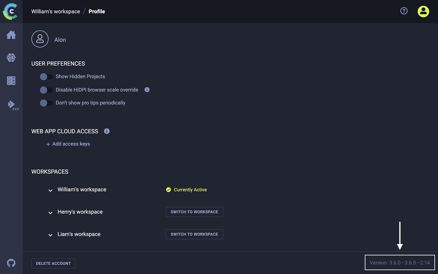 ClearML server version information is available in the ClearML webapp Settings page. On the bottom right of the page, it says Version, followed by three numbers: the web application version, the API server version, and the API version.