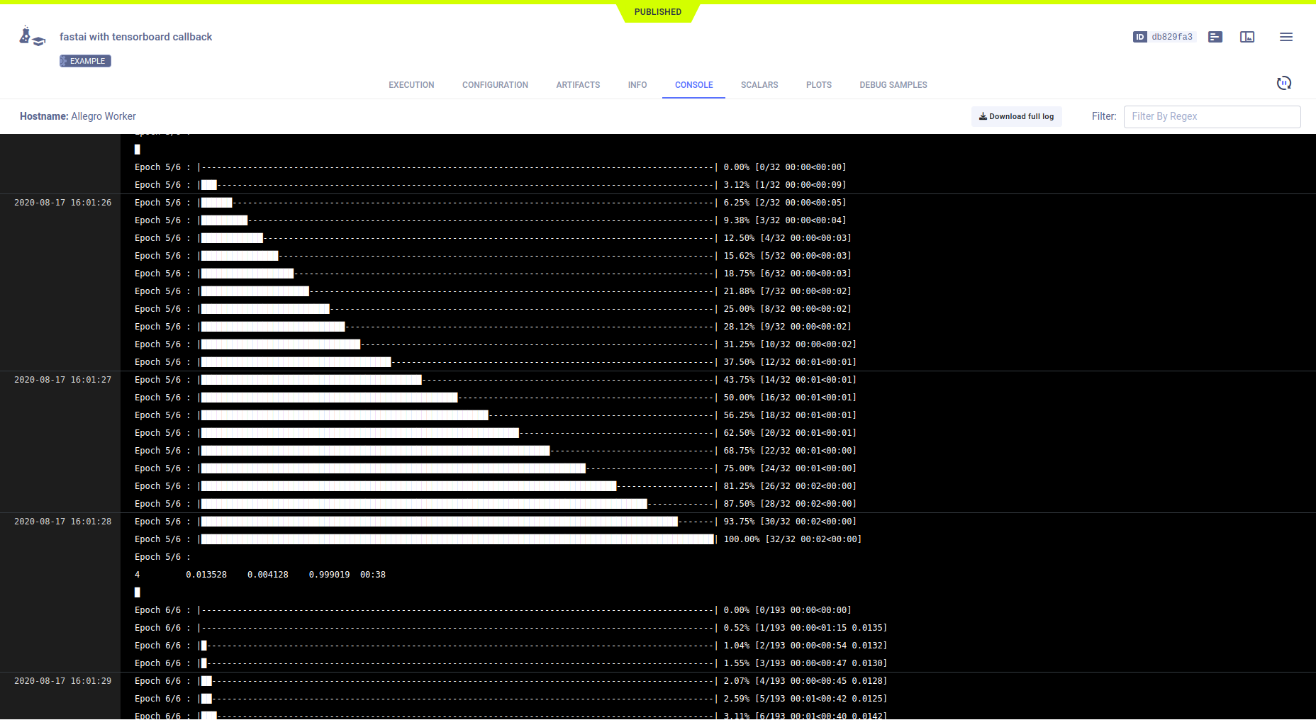 fastai with tensorboard callback, which is associated with theexamplesproject.