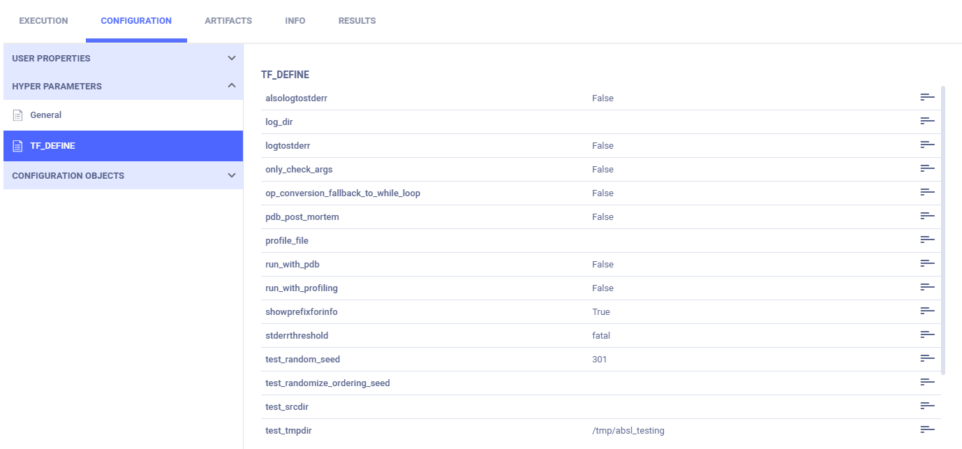 ClearML automatically logs TensorFlow Definitions. A parameter dictionary is logged by connecting it to the Task, by calling the Task.connect method.