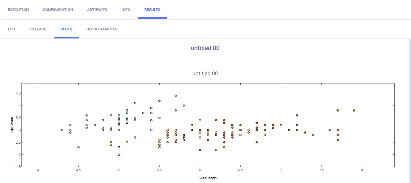 ClearML automatically logs the scatter plot, which appears in the experiment's page in the ClearML web UI, under