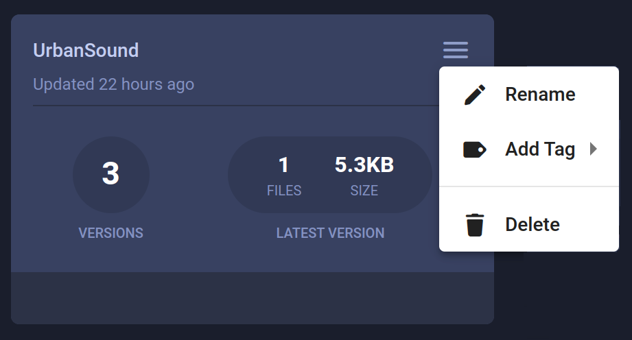 - Add Tag - Add label to the dataset to help easily classify groups of dataset.