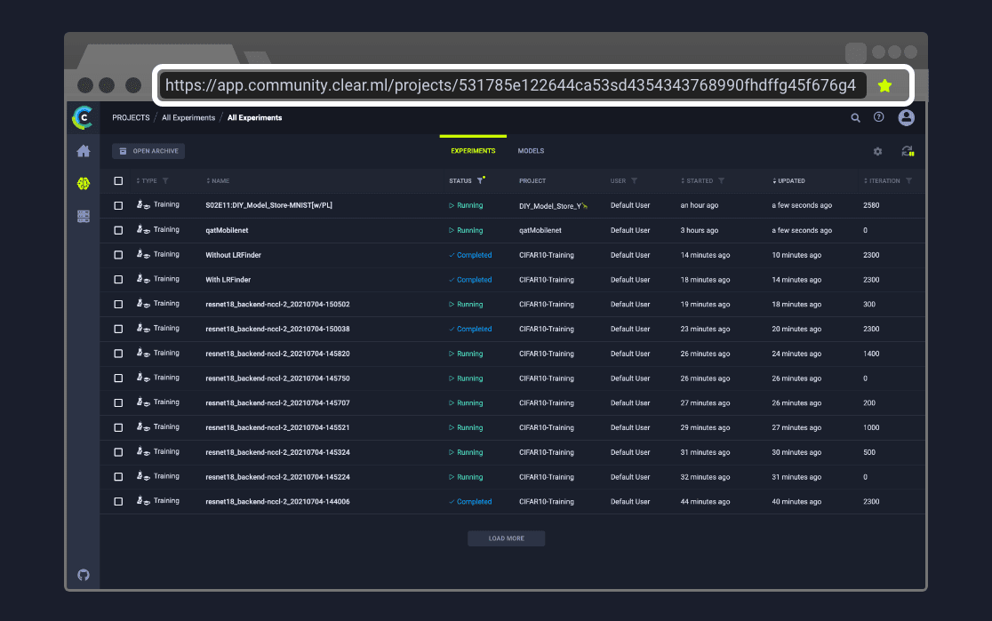 Changes are persistent (cached in the browser), and represented in the URL so customized settings can be saved in a browser bookmark and shared with other ClearML users to collaborate.