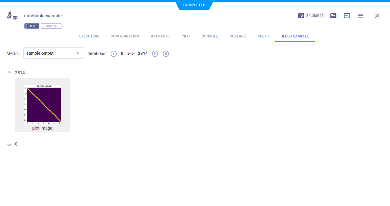 The example calls Matplotlib methods to log debug sample images. They appear in DEBUG SAMPLES.