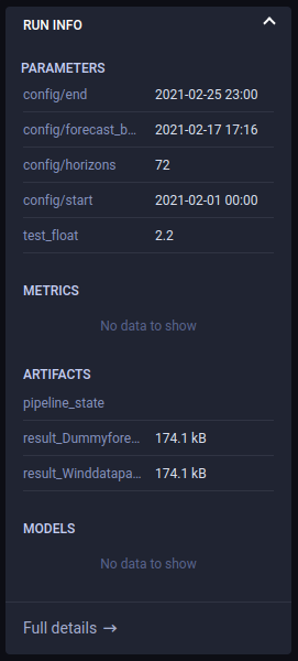 To view a run’s complete information, click Full details, which will open the pipeline’s controller task page. View each list’s complete details in the pipeline task’s corresponding tabs: