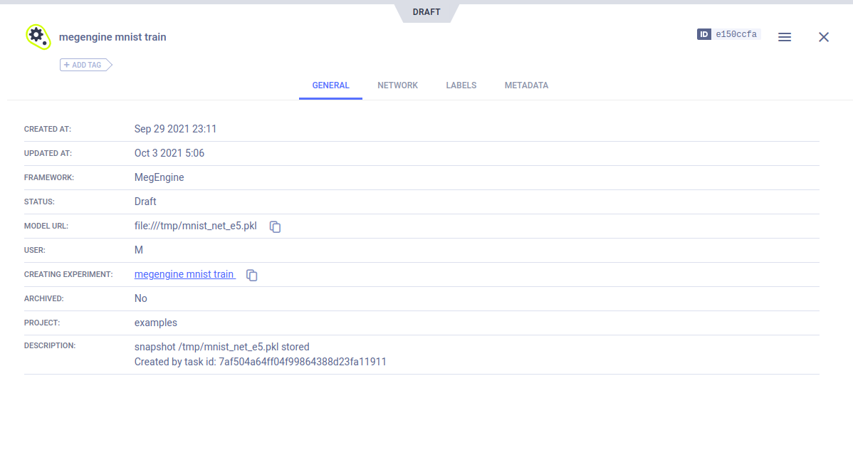 ClearML automatically captures the model logged using the megengine.save method, and saves it as an artifact.
