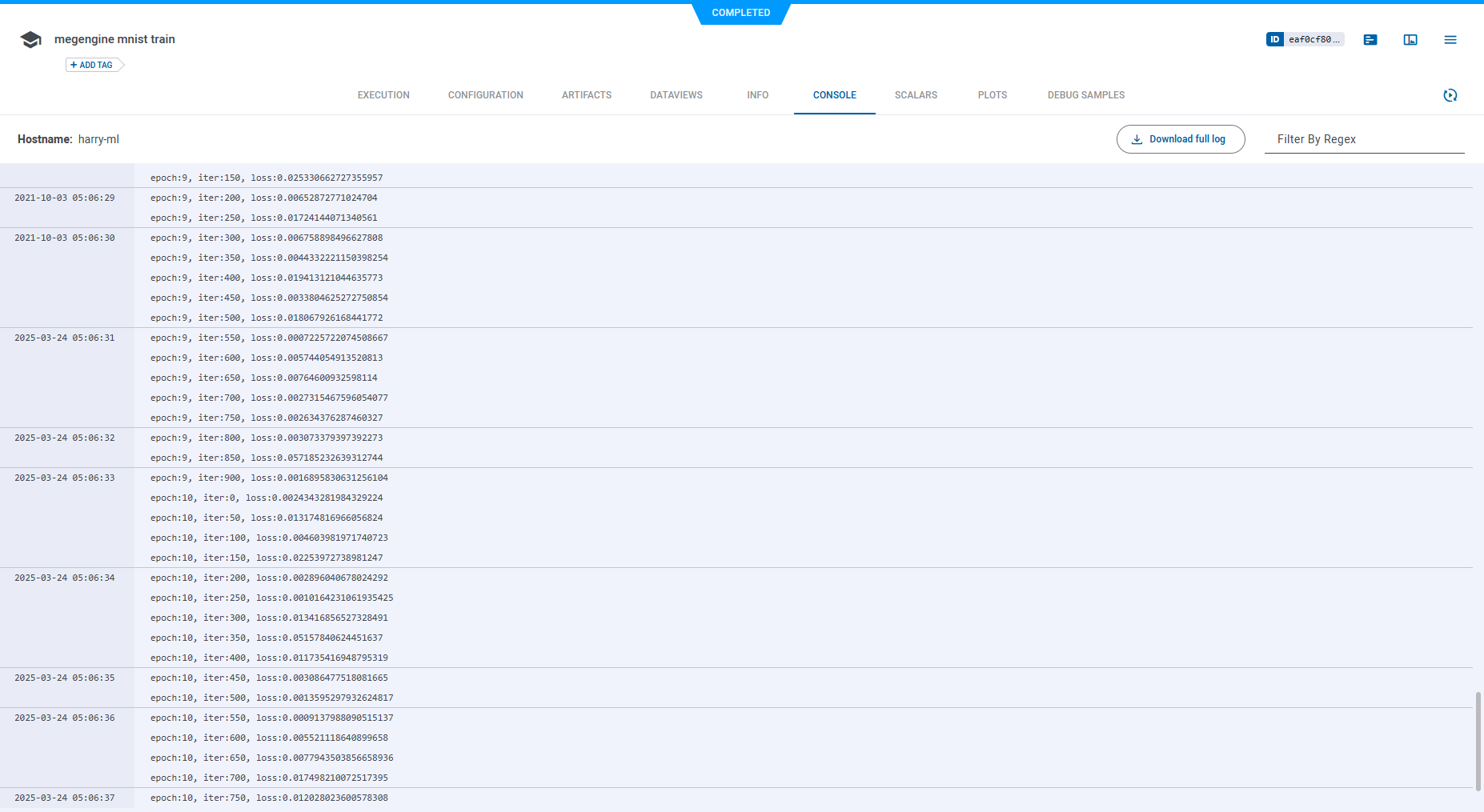 example demonstrates the integration of ClearML into code that uses MegEngine