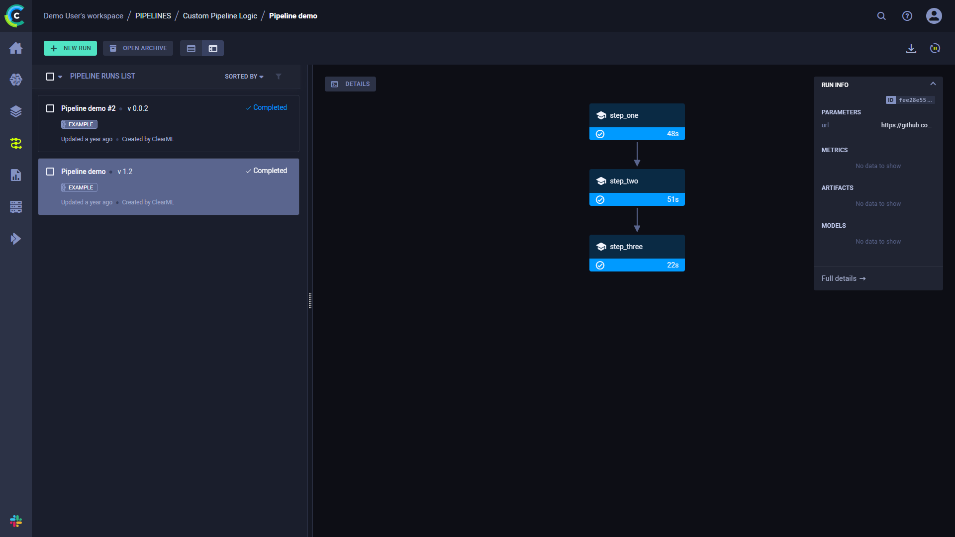 ClearML pipeline page: https://app.clear.ml/pipelines/462f48dba7b441ffb34bddb783711da7/experiments/bc93610688f242ecbbe70f413ff2cf5f