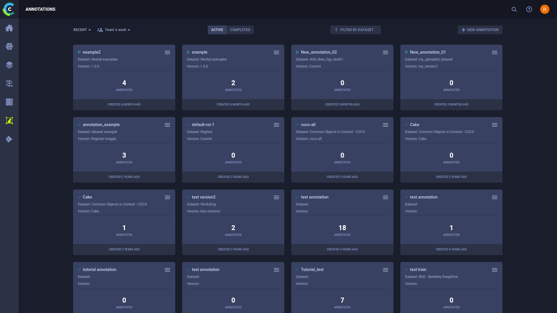 - Active / Completed Filter - Toggle to show annotation tasks that are either Active or Completed