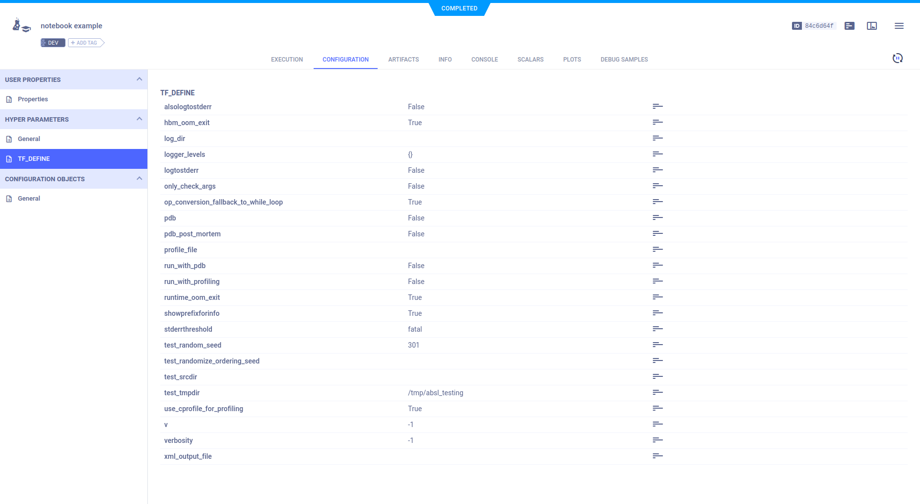 ClearML automatically logs TensorFlow Definitions. A parameter dictionary is logged by connecting it to the Task, by