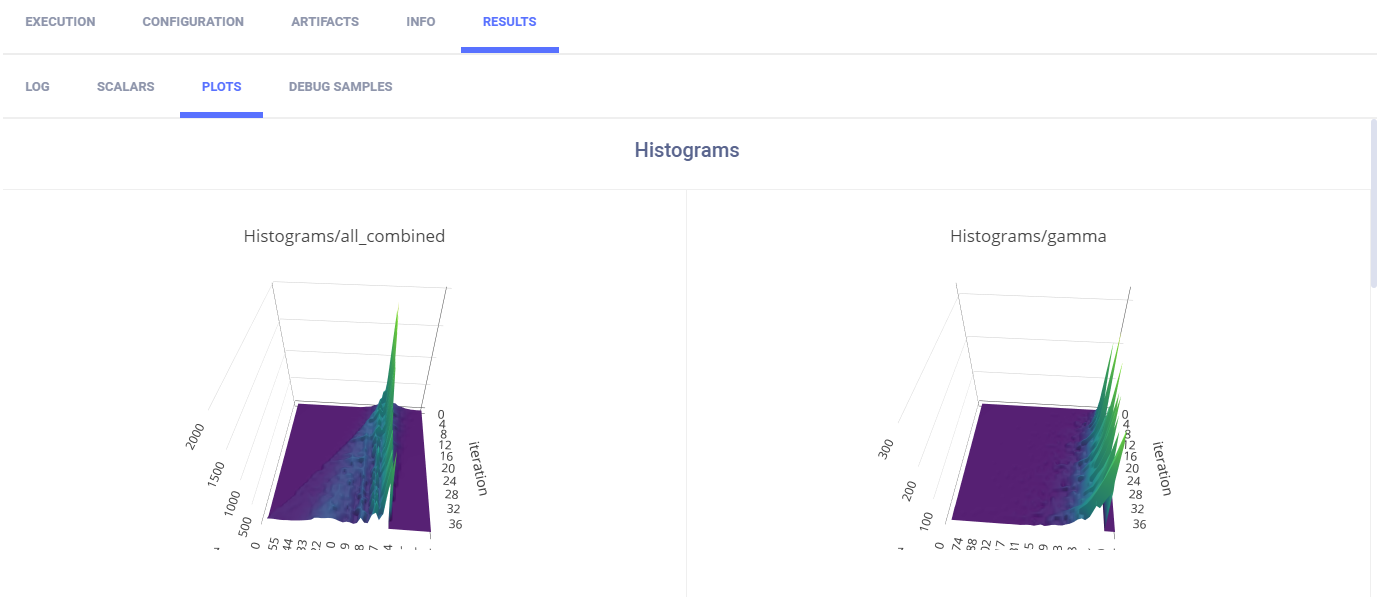 ClearML automatically tracks images and text output to TensorFlow. They appear in RESULTS > DEBUG SAMPLES.