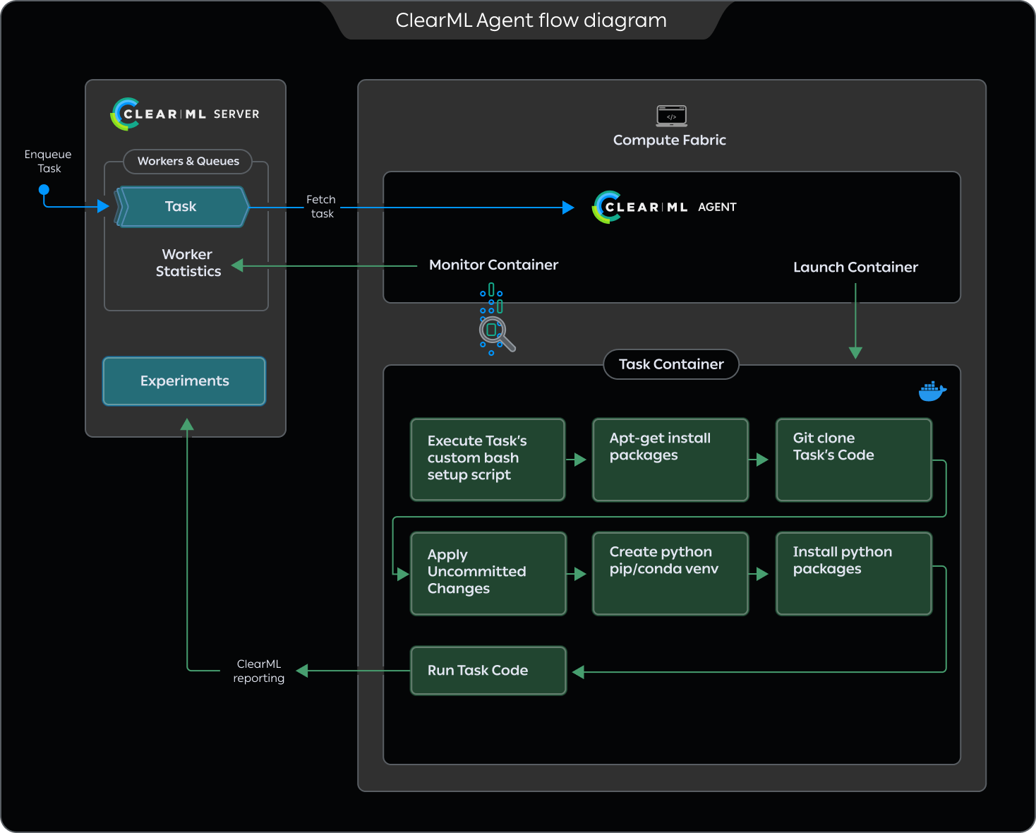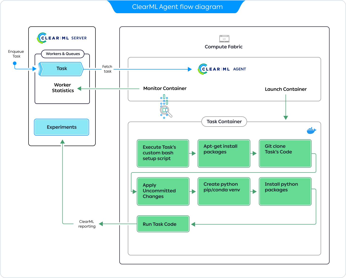Two major components of MLOps/LLMOps are experiment reproducibility, and the ability to scale work to multiple machines. ClearML workers, coupled with execution queues, address both these needs.