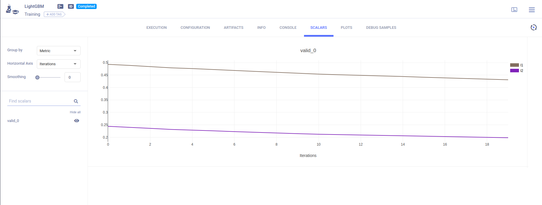 The lightgbm_example script demonstrates the integration of ClearML into code that uses LightGBM.