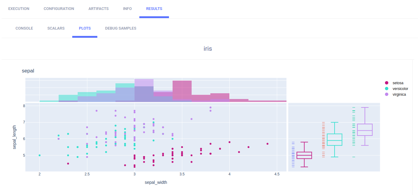 The plotly_reporting.py example demonstrates ClearML's Plotly integration and reporting.