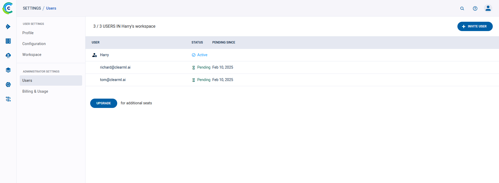 :::info Hosted Service Feature Inviting new teammates is only available on the ClearML Hosted Service. :::