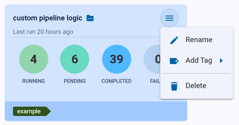 - Add Tag - Add label to the pipeline to help easily classify groups of pipelines.