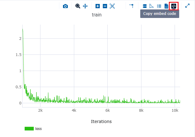 Click Embed in ClearML report. This generates the embed code for accessing the resource, and copies it to your clipboard.