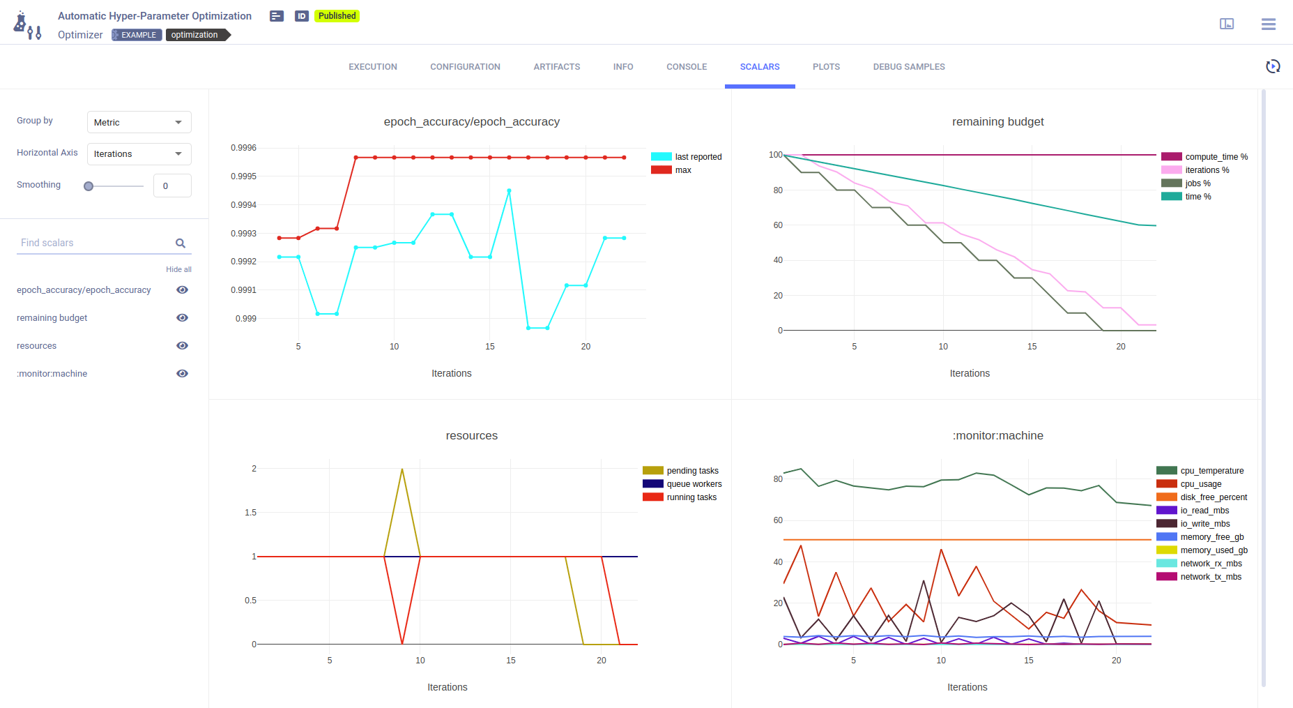 ClearML's approach to hyperparameter optimization is scalable, easy to set up and to manage, and it makes it easy to compare results.
