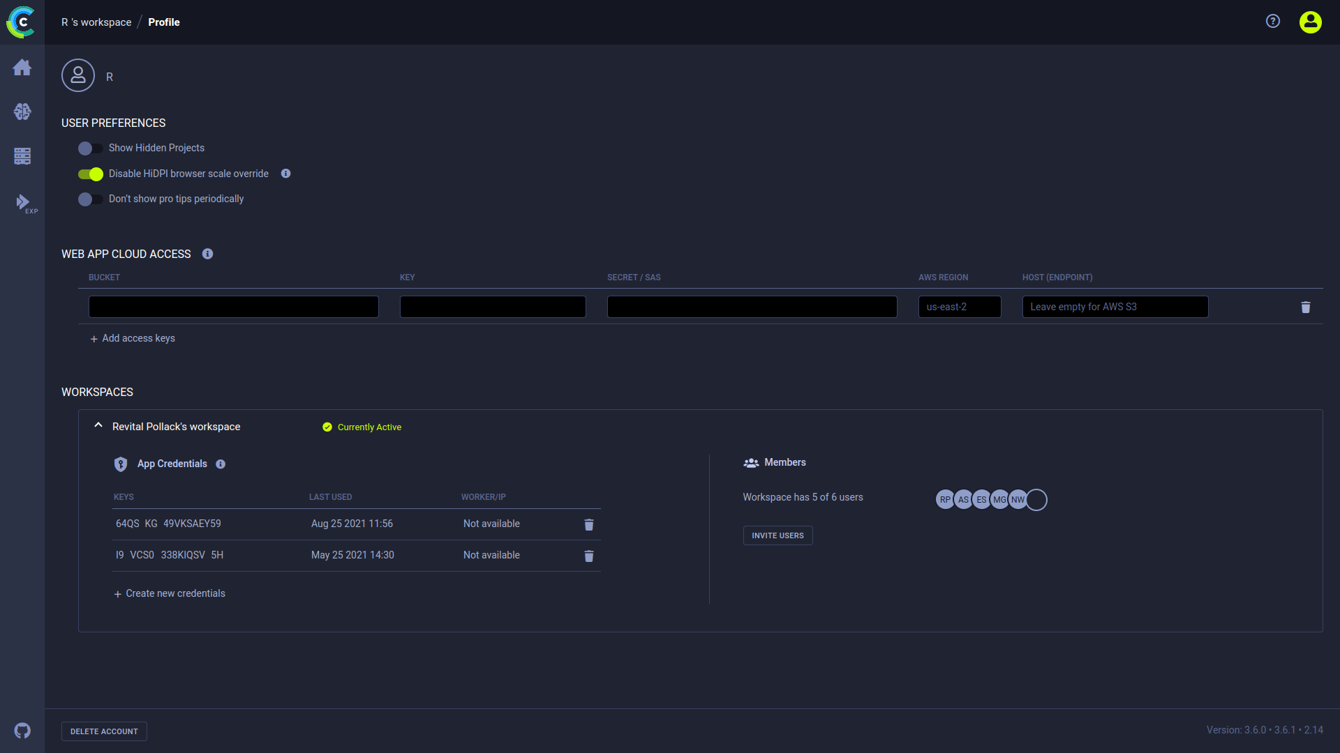 - Switch workspaces - If using multiple workspaces (are a member of more than one ClearML Hosted Service team), switch workspaces.