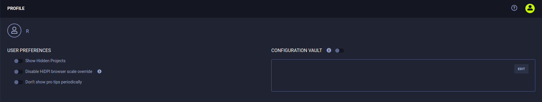 - Configuration vault (supported by the Enterprise Server) - Define additional ClearML configuration entries that are applied to all ClearML and ClearML Agent instances (which use this profile's access credentials).