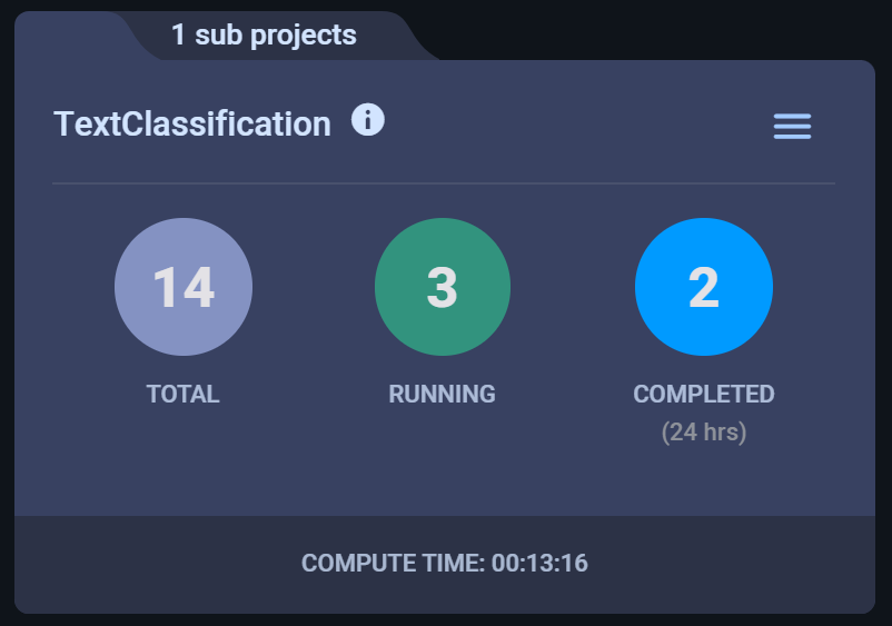 When the project contains subprojects, the folder shows the number of subprojects within the project as an additional tab. Click the tab to view a list of subprojects, and click on a subproject's name to navigate to it.