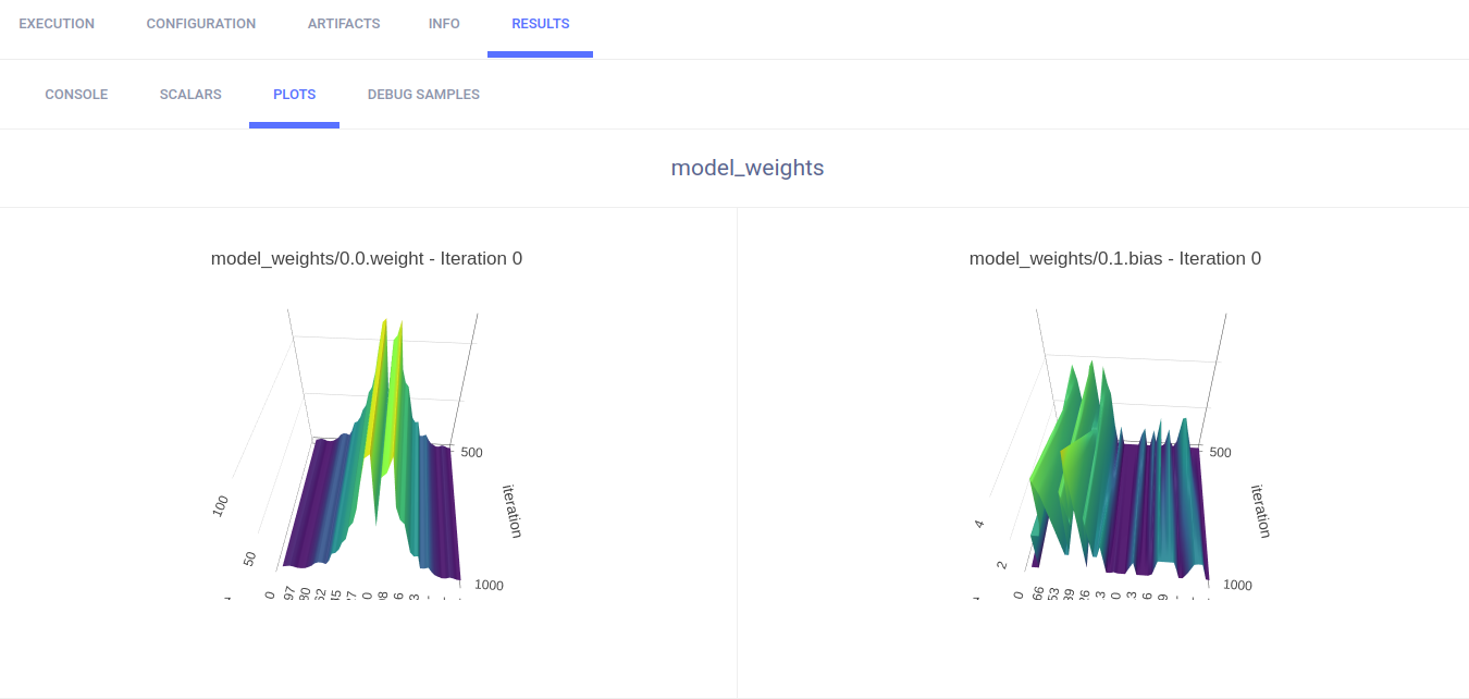 ClearML automatically logs the histogram output to TensorBoard. They appear in RESULTS > PLOTS.