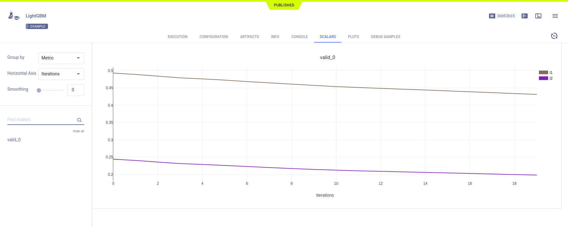 The lightgbm_example script demonstrates the integration of ClearML into code that uses LightGBM.