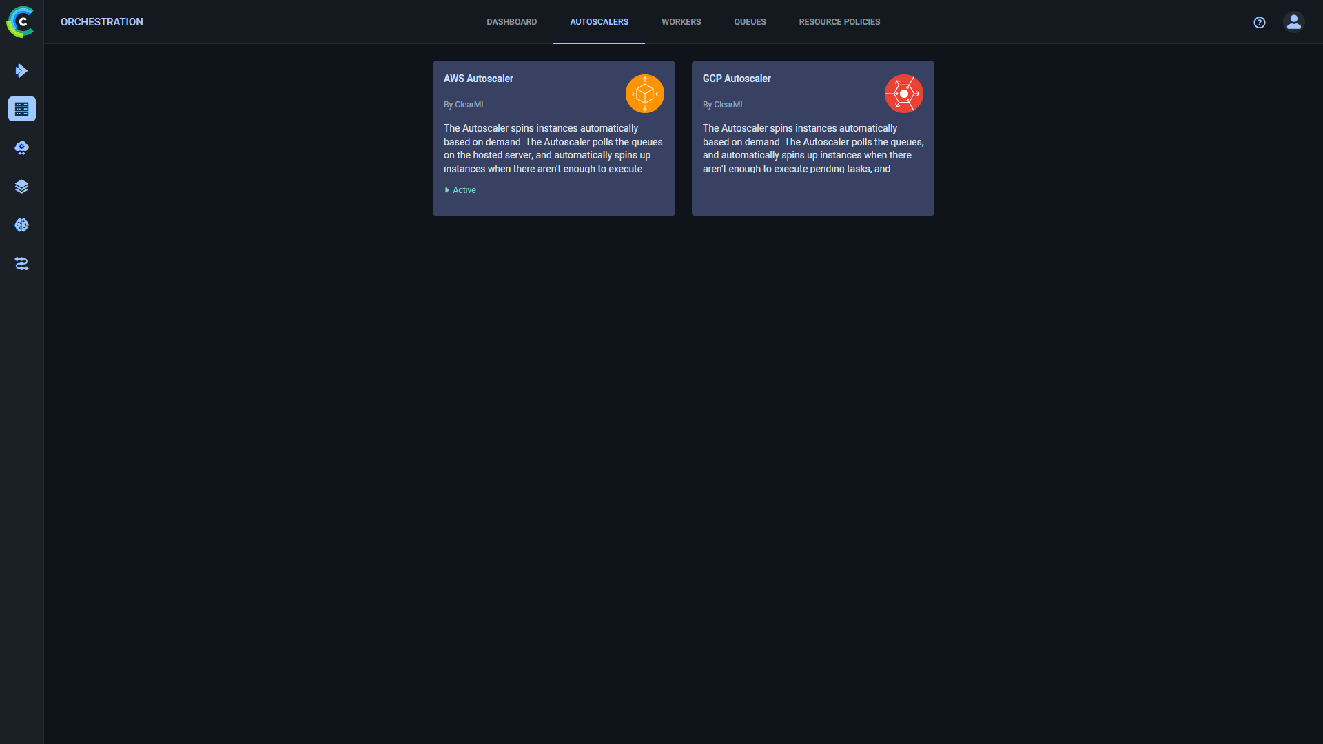 Use the AUTOSCALERS tab to access ClearML's cloud autoscaling applications: