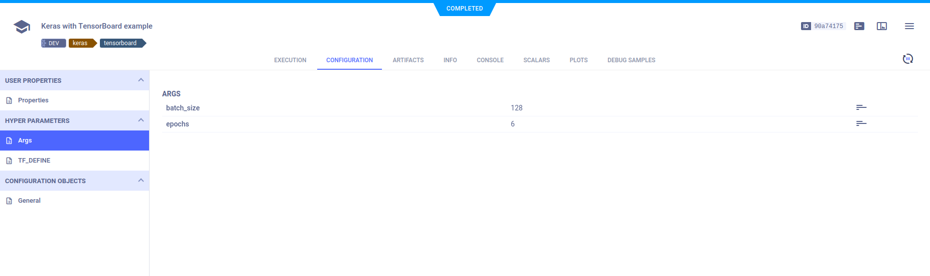 ClearML automatically logs command line options generated with argparse, and TensorFlow Definitions.