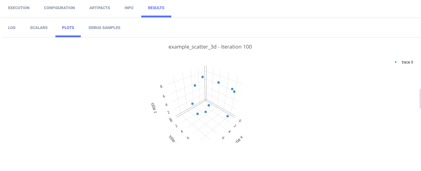 To plot a series as a 3-dimensional scatter plot, use the Logger.report_scatter3d method.