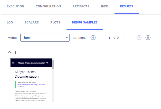 logger.report_media("html", "url_html", iteration=1, url="https://allegro.ai/docs/index.html")