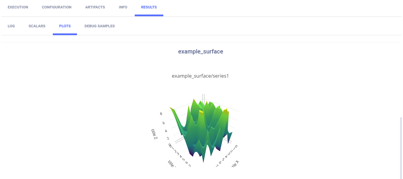 To plot a series as a surface plot, use the Logger.report_surface method.