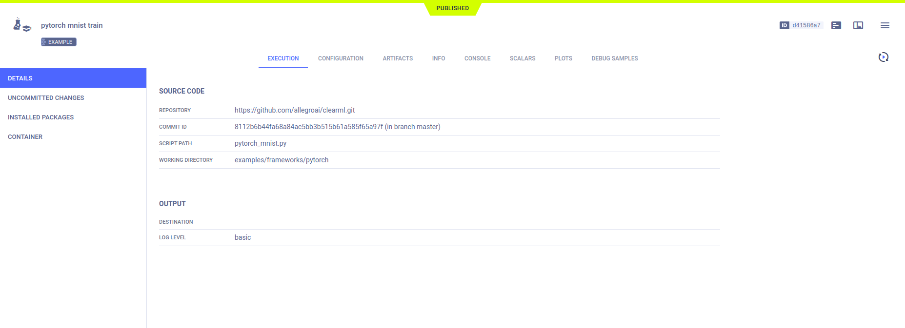 - Once a ClearML Task is initialized, ClearML automatically logs the complete environment information