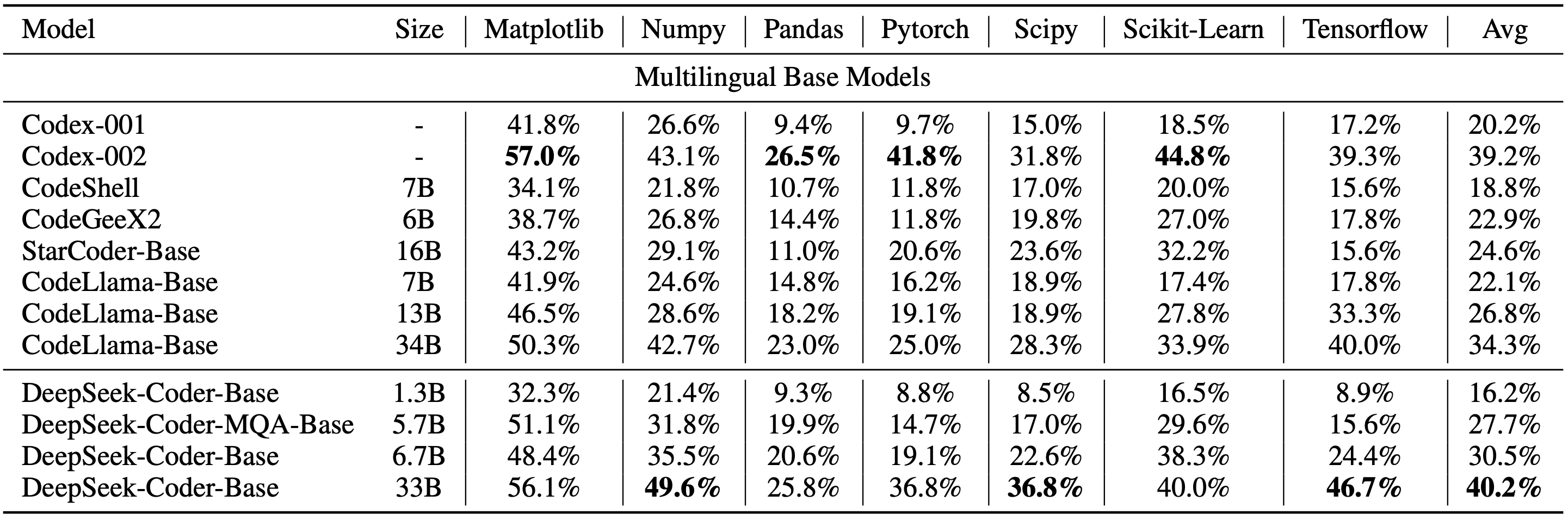 The result shows that DeepSeek-Coder-Base-33B significantly outperforms existing open-source code LLMs. Compared with CodeLlama-34B, it leads by 7.9%, 9.3%, 10.8% and 5.9% respectively on HumanEval Python, HumanEval Multilingual, MBPP and DS-1000. Surprisingly, our DeepSeek-Coder-Base-7B reaches the performance of CodeLlama-34B. The DeepSeek-Coder-Instruct-33B model after instruction tuning outperforms GPT35-turbo on HumanEval and achieves comparable results with GPT35-turbo on MBPP.