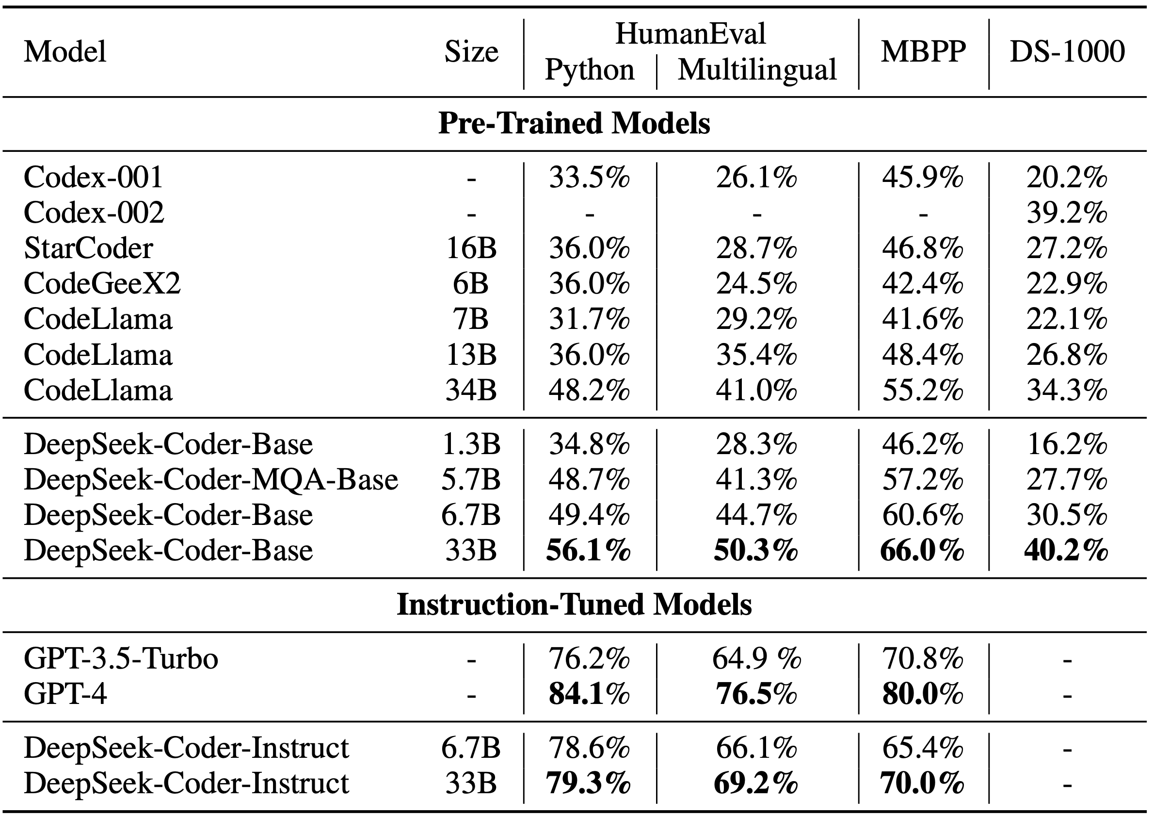 - Step 3: Instruction Fine-tuning on 2B tokens of instruction data, resulting in instruction-tuned models (DeepSeek-Coder-Instruct).
