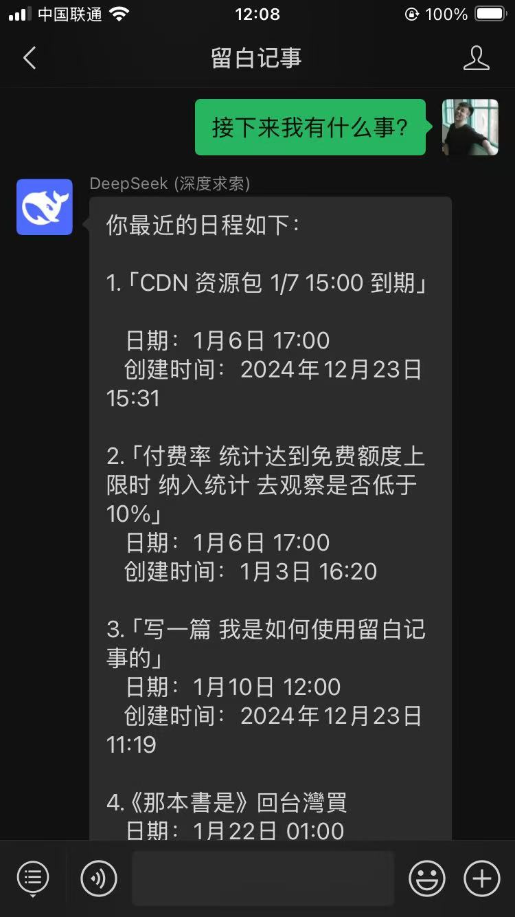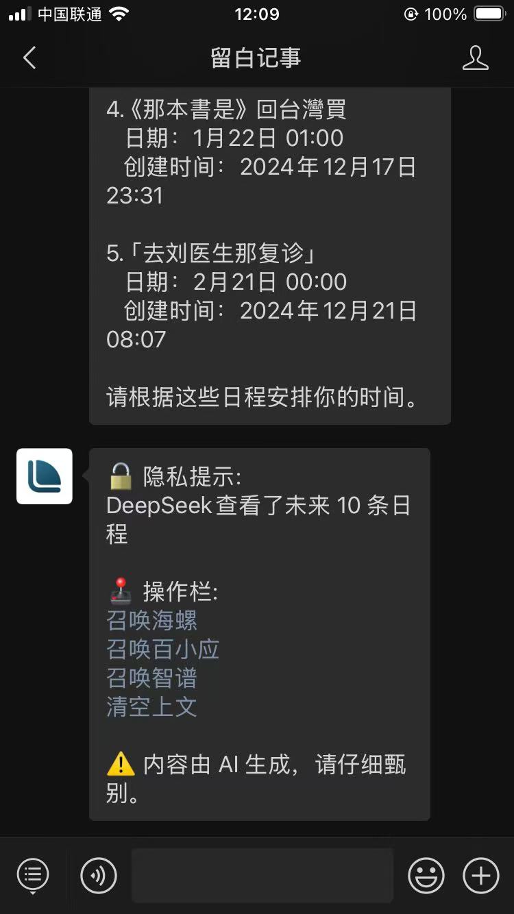 Let DeepSeek manage your Notes, Tasks, Calendars, and To-Do Lists directly on WeChat!