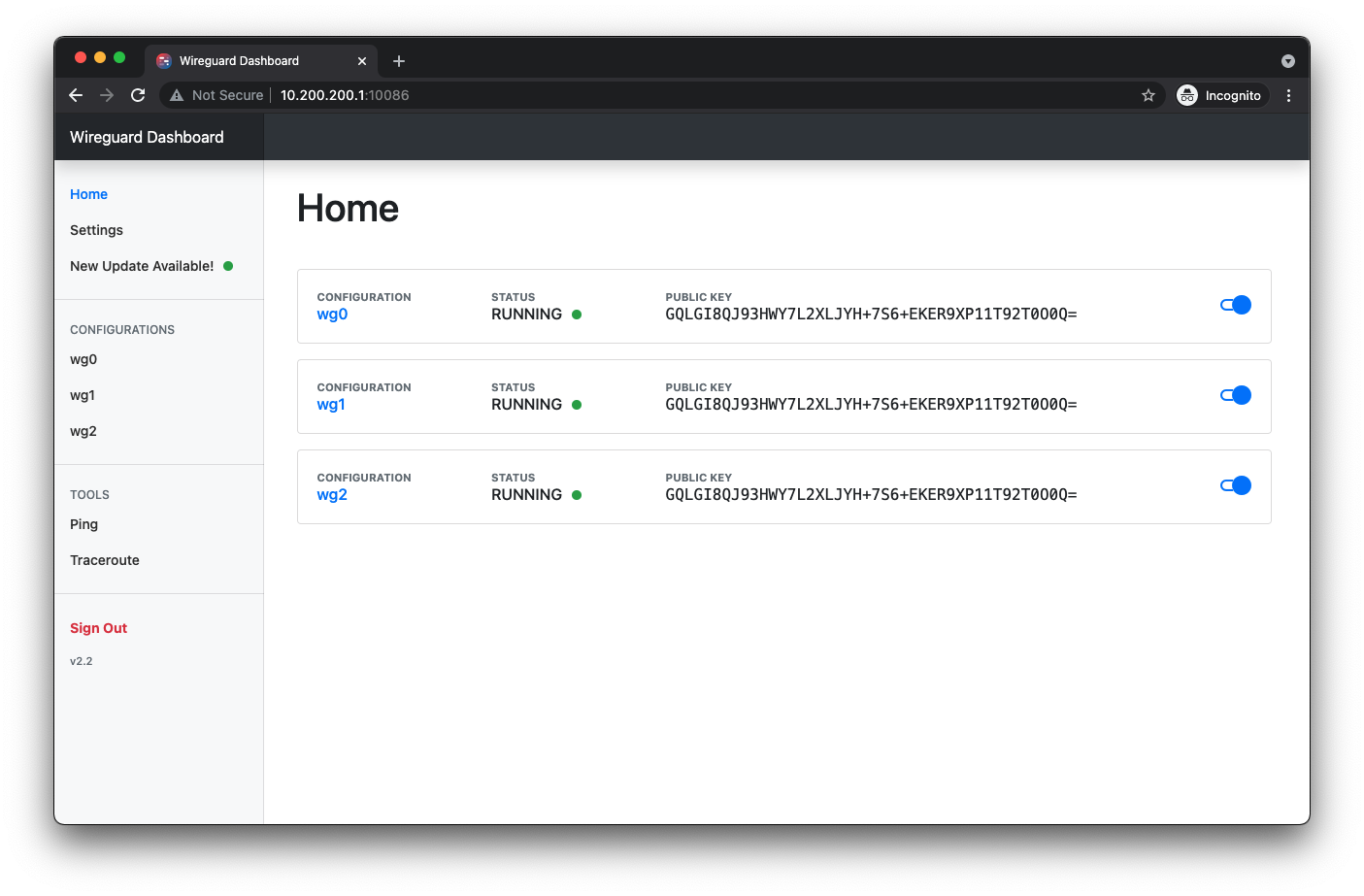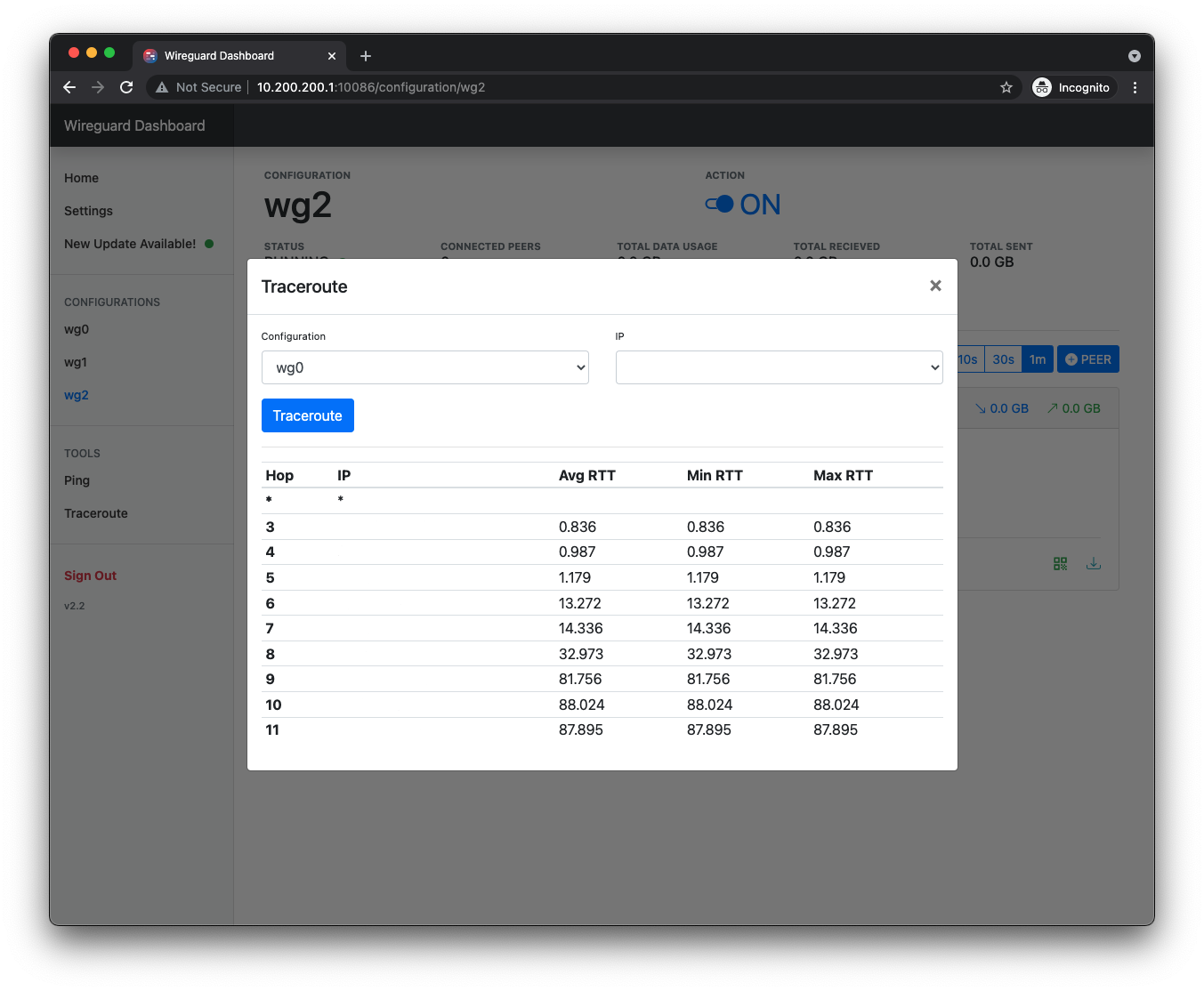 • When there are comments in the wireguard config file, will cause the dashboard to crash.