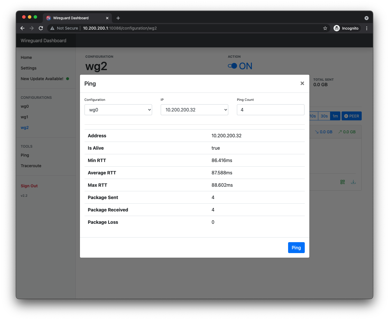 • View peers and configuration real time details (Data Usage, Latest Handshakes...)