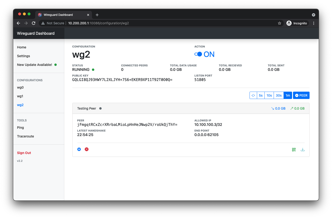 • View peers and configuration real time details (Data Usage, Latest Handshakes...)