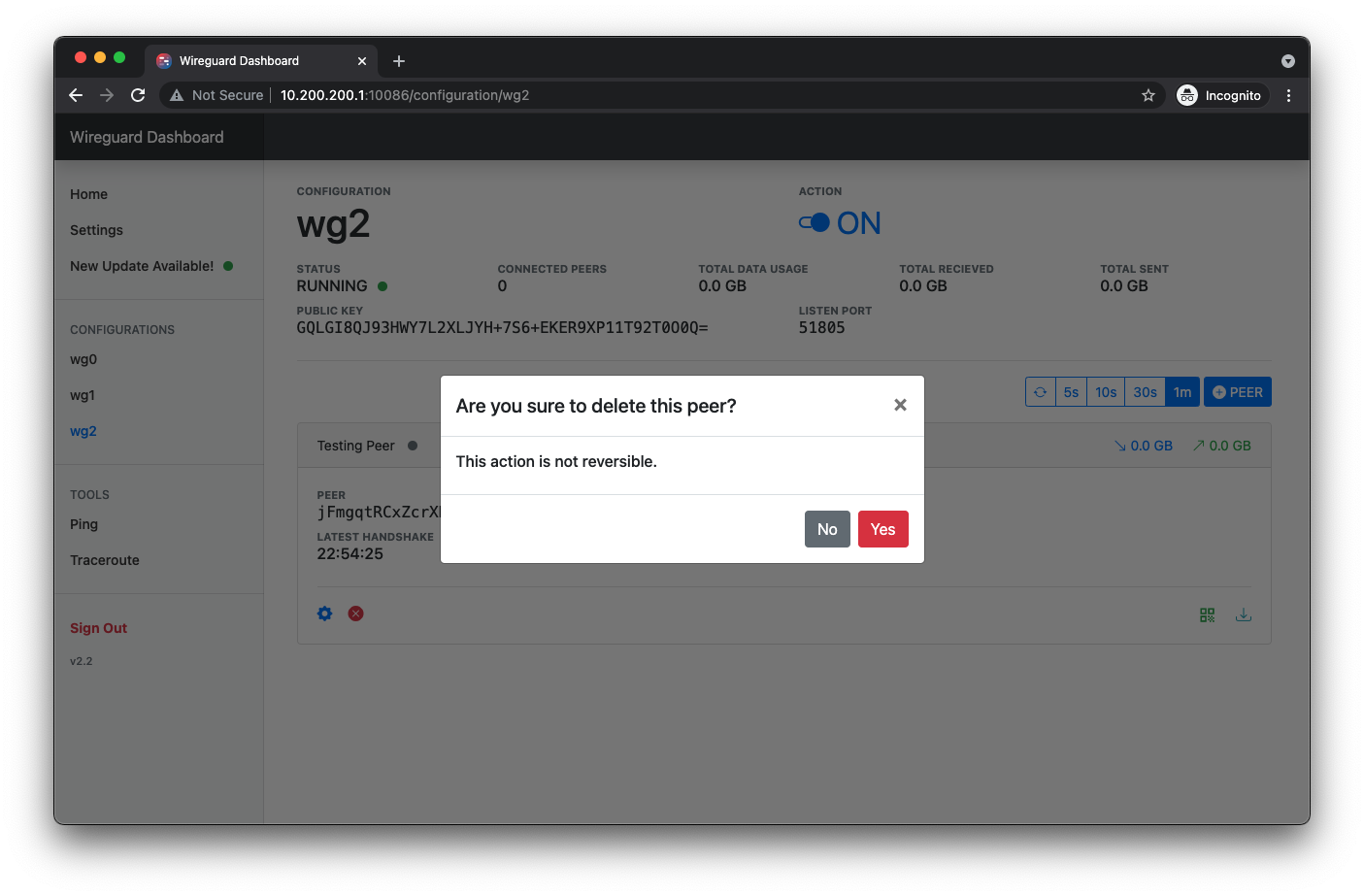 • View peers and configuration real time details (Data Usage, Latest Handshakes...)
